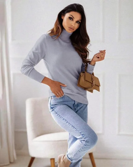 Πλεκτή μπλούζα με ψηλή λαιμόκοψη δίχρωμη