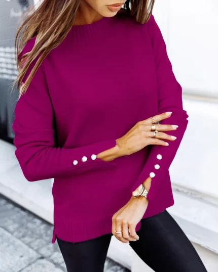 Πλεκτή μπλούζα με διακοσμητικά κουμπιά στα μανίκια