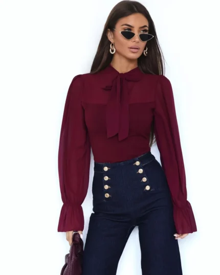 Μπλούζα με φιόγκο και μακριά μανίκια