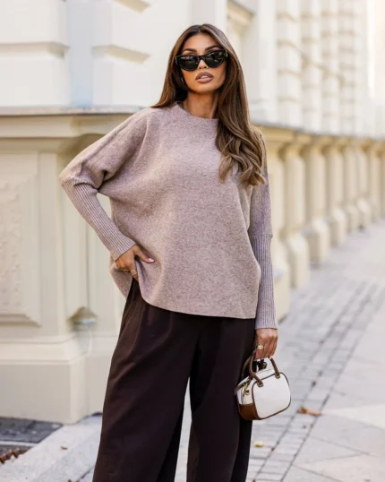 Πλεκτή μπλούζα με ίσια γραμμή και στρογγυλή λαιμόκοψη