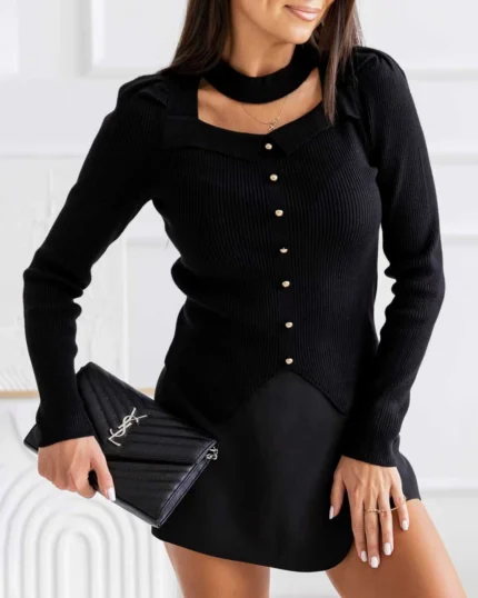 Πλεκτό τοπ με κουμπιά και διακριτικό άνοιγμα στο ντεκολτέ
