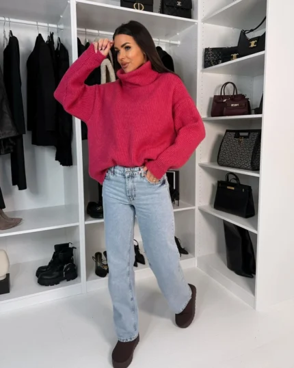 Πλεκτή oversized μπλούζα με ζιβάγκο