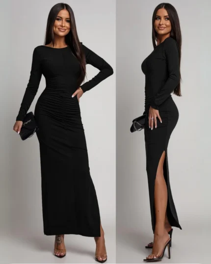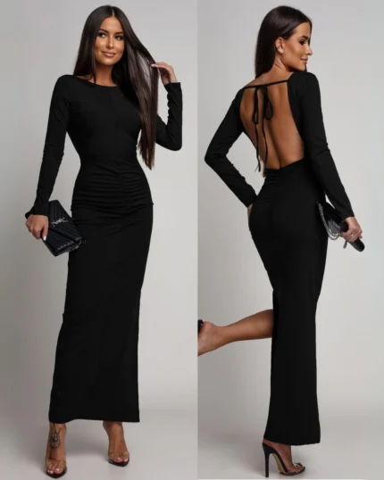 Μάξι φόρεμα με ανοιχτή πλάτη και σκίσιμο στο πλάι