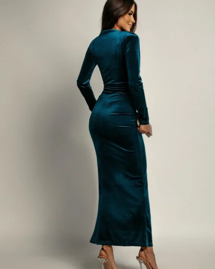 Βελουτέ μάξι φόρεμα με σούρες και άνοιγμα