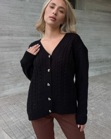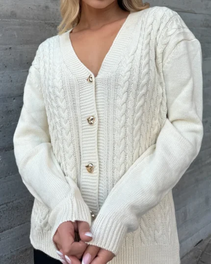Πλεκτή ζακέτα με πλεξούδες και κουμπιά καρδιά