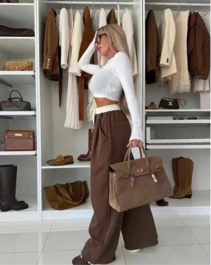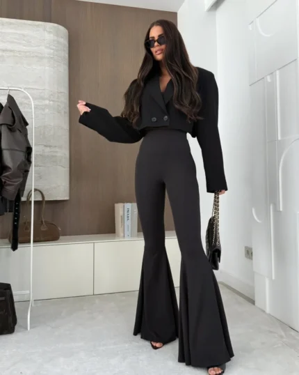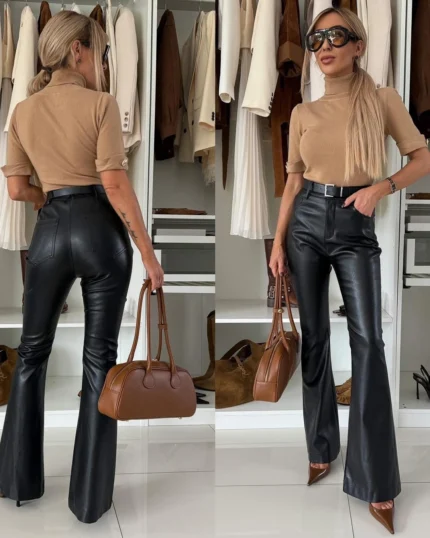 Παντελόνι ψηλόμεσο καμπάνα από ελαστικό ύφασμα