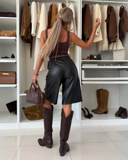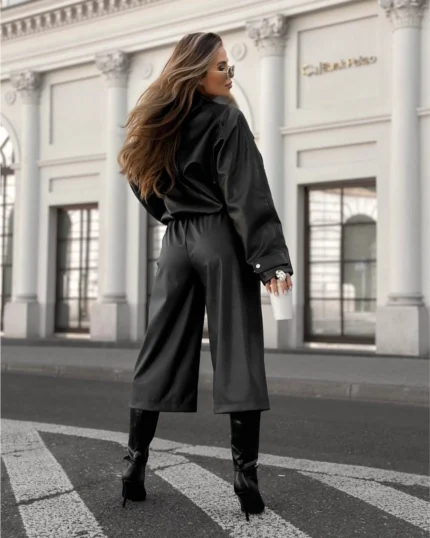 Παντελόνι δερματίνης με κορδόνι μαύρο