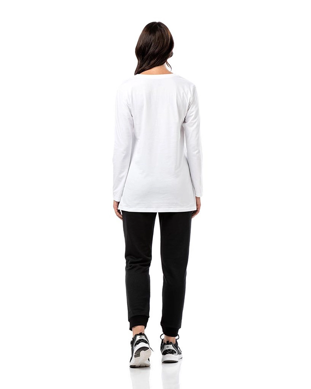 Μπλούζα μακρυμάνικη βαμβακερή σε λευκό | Bodymove