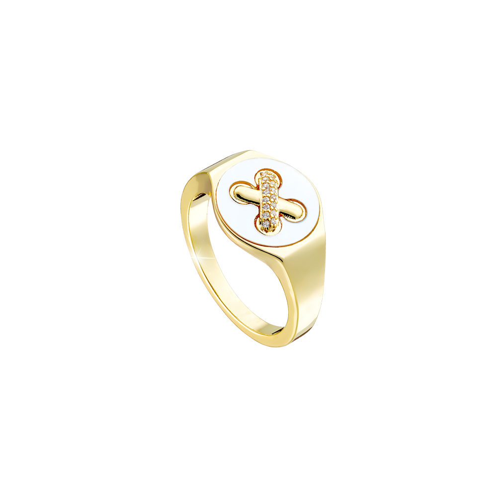 Δαχτυλίδι Desmos μεταλλικό επίχρυσο με λευκό mop στοιχείο και λευκά ζιργκόν