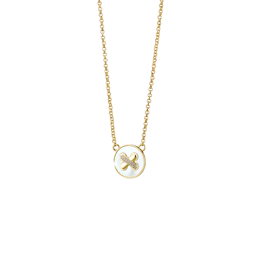 Κολιέ Desmos μεταλλικό επίχρυσο με λευκό mop στοιχείο και λευκά ζιργκόν