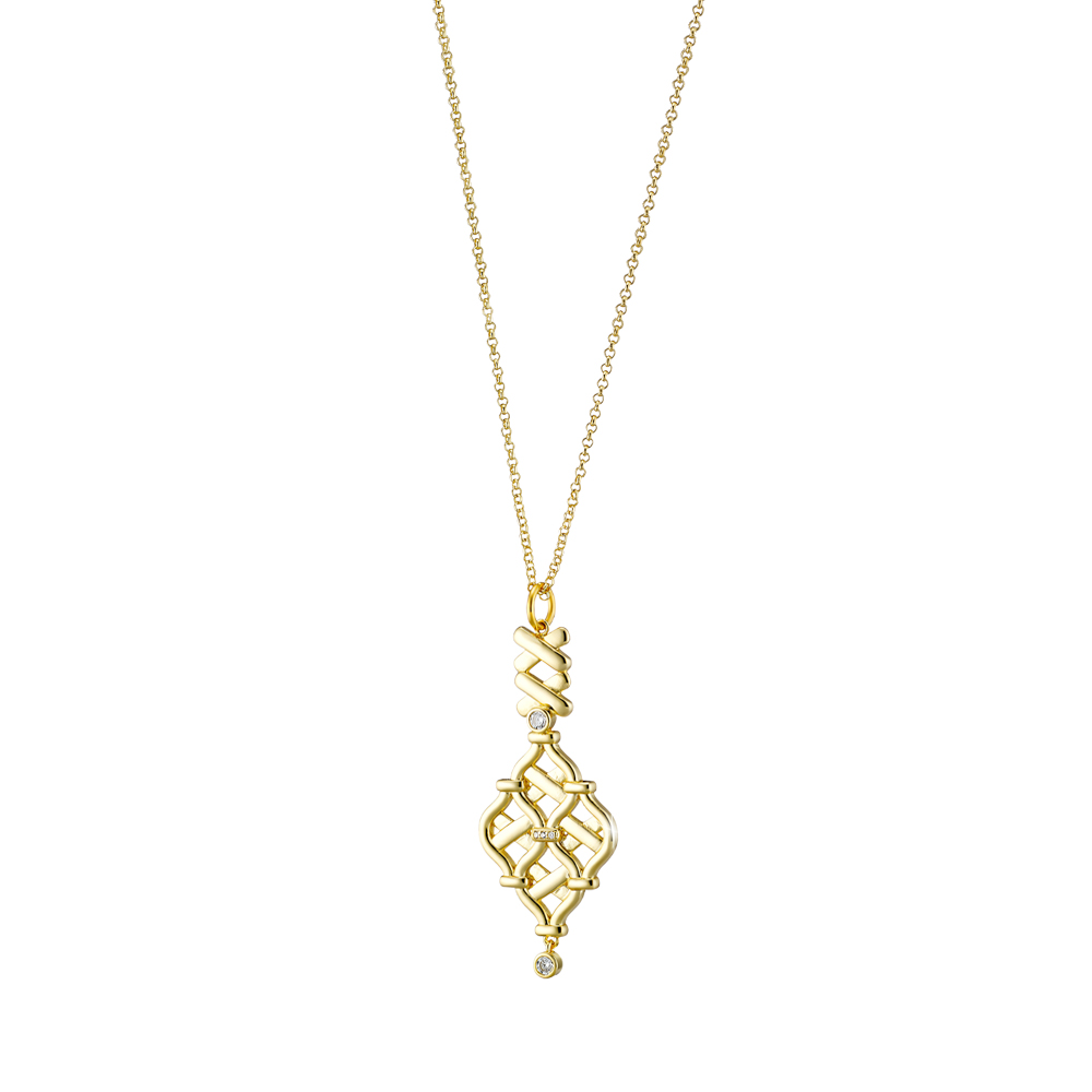Loisir κολιέ Desmos μεταλλικό επίχρυσο με πλεκτό σχέδιο και λευκά ζιργκόν 01L15-02048