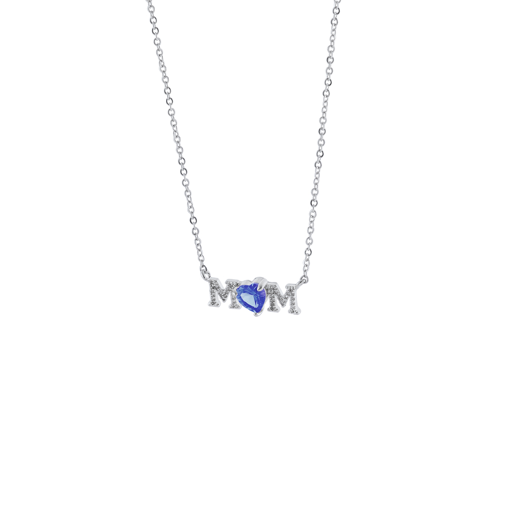 Κολιέ Mama μεταλλικό ασημί “MOM” με μπλε καρδιά ζιργκόν
