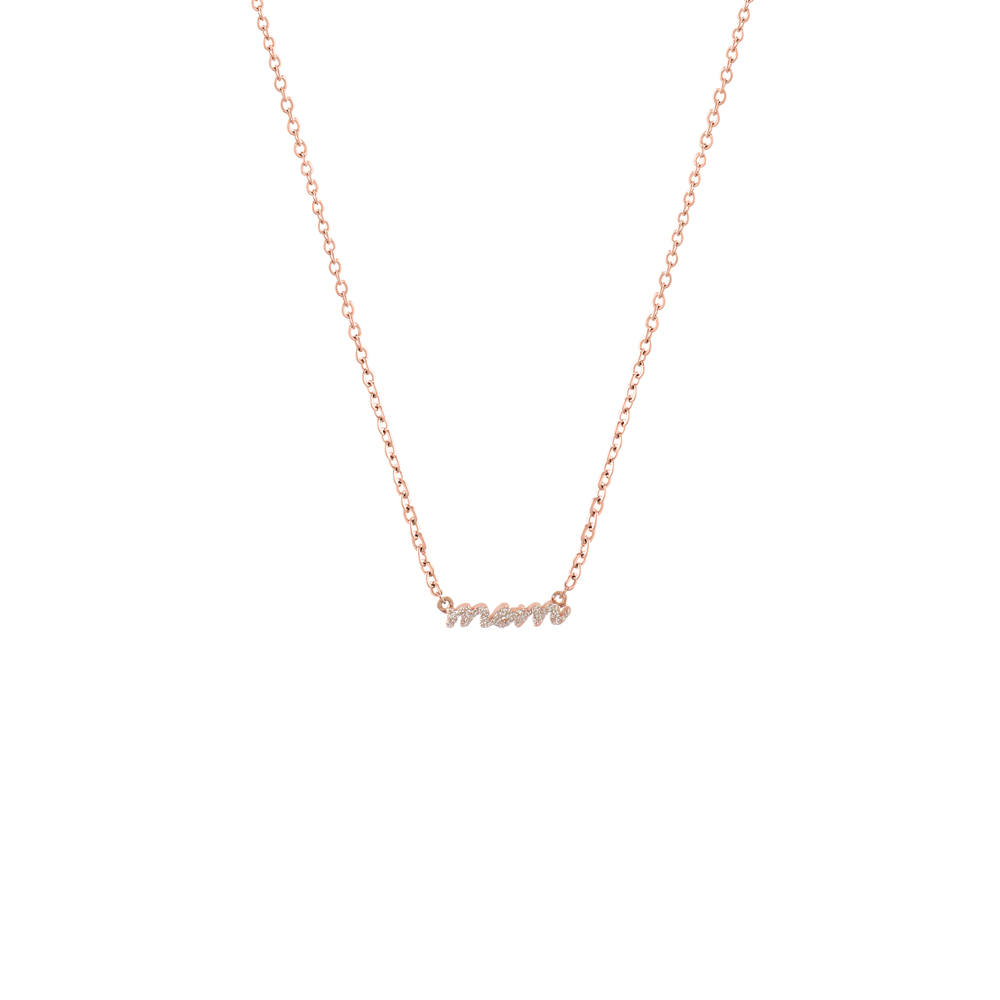 Αφιερωμένο στις μητέρες, το κολιέ “Mom” φτιαγμένο από μέταλλο σε ροζ χρυσή επιμετάλλωση είναι το ιδανικό δώρο για το πιο αγαπημένο σας πρόσωπο.