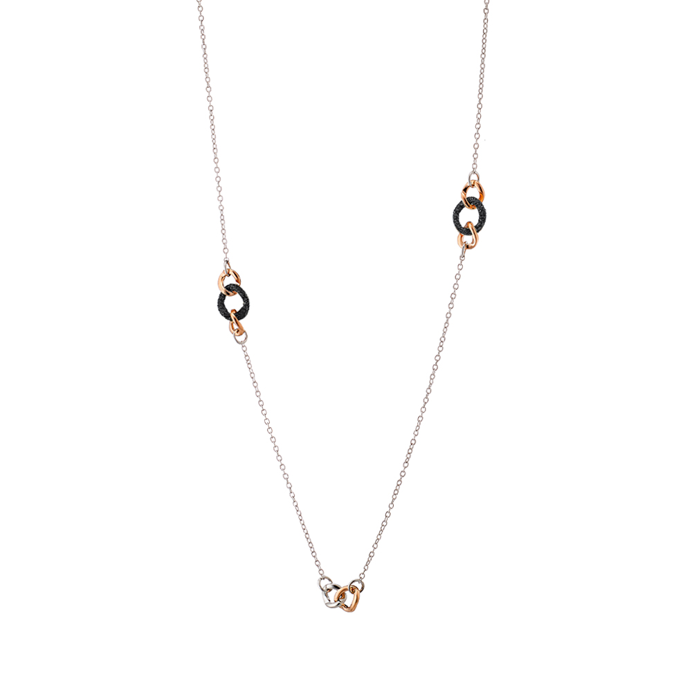 Loisir κολιέ Starstruck μεταλλικό δίχρωμο ασημί-ροζ χρυσό μακρύ με κρίκους και μαύρο glitter 01L15-01979