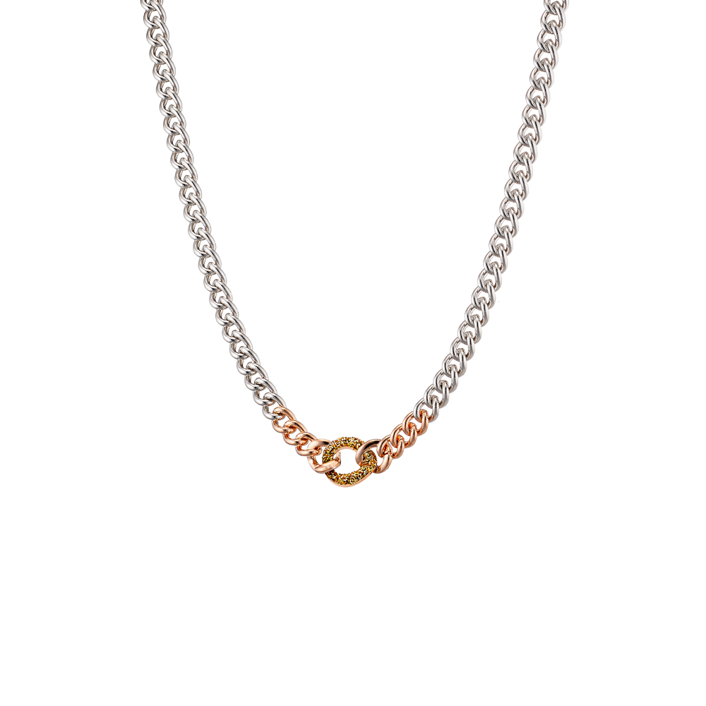 Loisir κολιέ Starstruck μεταλλικό δίχρωμο ασημί-ροζ χρυσό με κρίκους και χρυσό glitter 01L15-01982