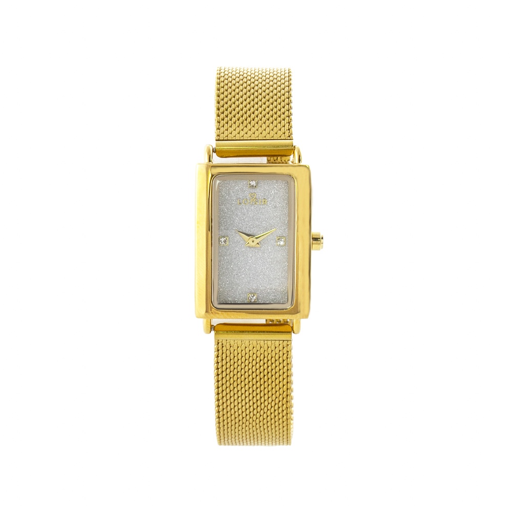 Loisir ρολόι Board με επίχρυσο ατσάλινο mesh band και ασημί glitter καντράν 11L05-00733