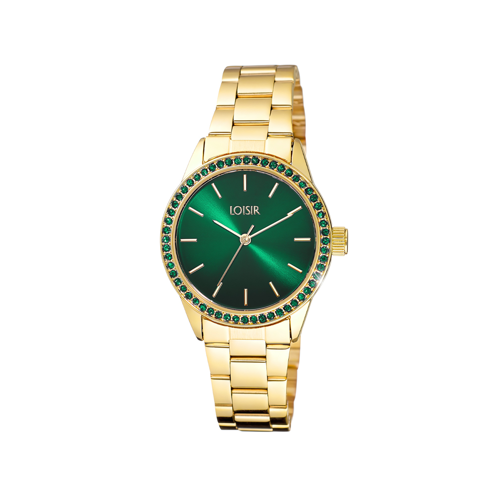 Loisir ρολόι Hippy με επίχρυσο ατσάλινο μπρασελέ, πράσινο καντράν και πράσινα κρύσταλλα 11L05-00685