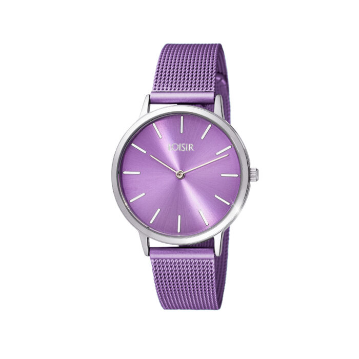Loisir ρολόι Society με λιλά ατσάλινο mesh band και λιλά καντράν 11L03-00512