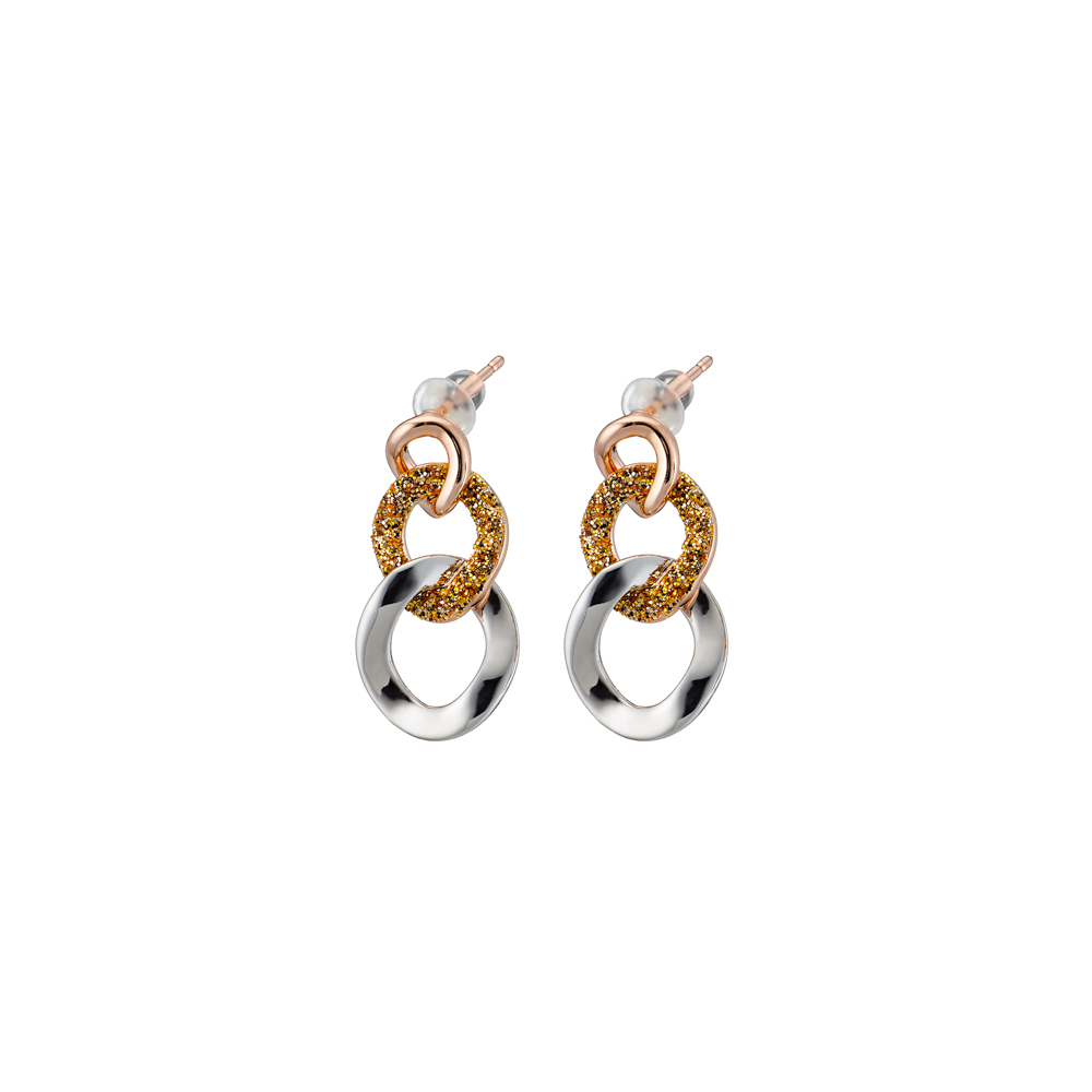 Loisir σκουλαρίκια Starstruck μεταλλικά δίχρωμα ασημί-ροζ χρυσά με κρίκους και χρυσό glitter 03L15-01745