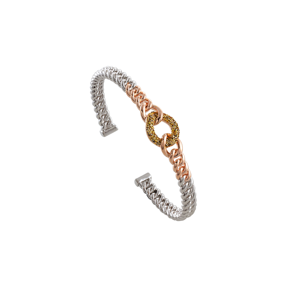 Βραχιόλι Starstruck μεταλλικό δίχρωμο ασημί-ροζ χρυσό σταθερό με κρίκους και χρυσό glitter