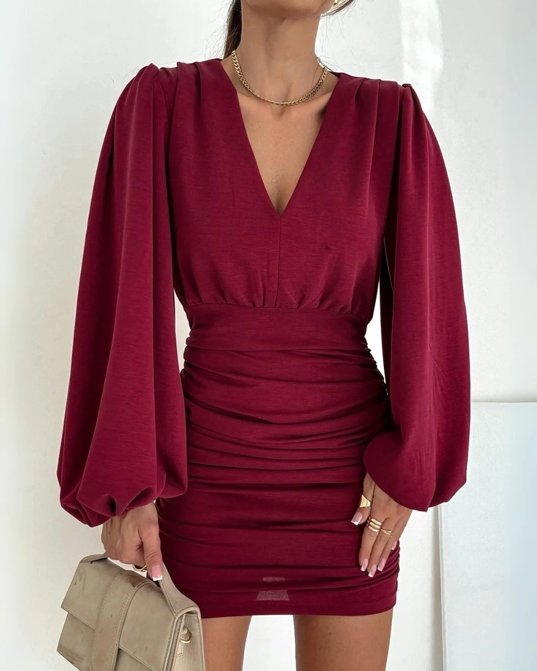 Μίνι φόρεμα με balloon μανίκια και σούρες