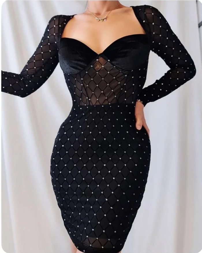 Ξεχωρίστε με αυτό το μίνι φόρεμα διακοσμημένο με λαμπερά στρασάκια, που προσφέρει εκλεπτυσμένη λάμψη σε κάθε σας εμφάνιση. Οι διαφάνειες στα μανίκια, στη μέση και στο τελείωμα δημιουργούν σαγηνευτικό αποτέλεσμα, ενώ το ανοιχτό ντεκολτέ από βελούδο με ενίσχυση στο μπούστο εξασφαλίζει άψογη εφαρμογή και θηλυκή γραμμή. Ιδανικό για βραδινές εξόδους, επίσημες εκδηλώσεις και ειδικές περιστάσεις.