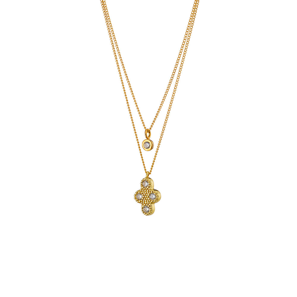 Κολιέ Natrix μεταλλικό επίχρυσο διπλό με σταυρό και λευκά ζιργκόν