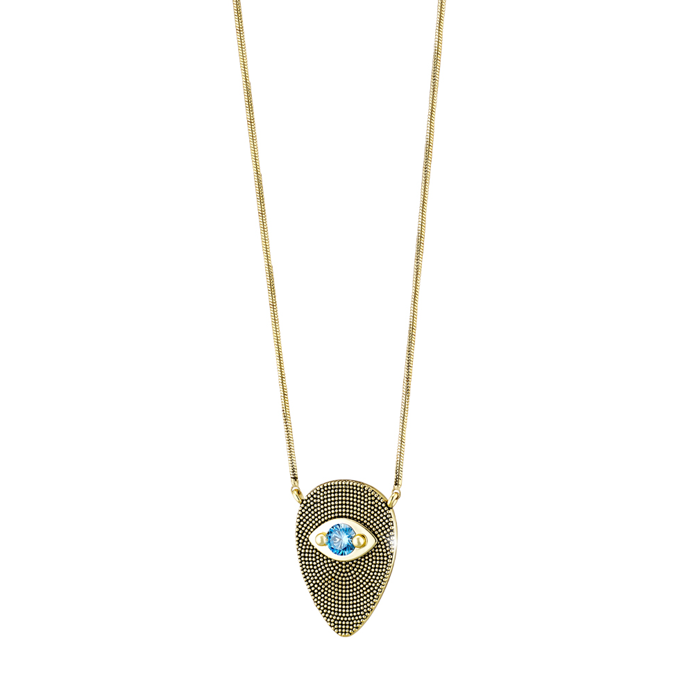 Κολιέ Natrix μεταλλικό επίχρυσο με στοιχείο δάκρυ και μπλε μάτι ζιργκόν