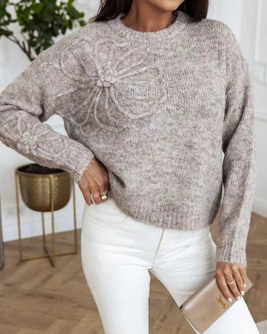 Πλεκτή μπλούζα με ανάγλυφα λουλούδια