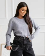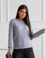 Ανανεώστε το καθημερινό σας στυλ με αυτή την πλεκτή μπλούζα, σχεδιασμένη με στρογγυλή λαιμόκοψη και λεπτό σχέδιο πλεξούδας που προσθέτει διακριτική κομψότητα. Η απαλή υφή της προσφέρει άνεση όλη μέρα, ενώ το διαχρονικό της design την καθιστά ιδανική επιλογή για casual αλλά και πιο προσεγμένες εμφανίσεις τις δροσερές μέρες του φθινοπώρου και του χειμώνα. Συνδυάζεται εύκολα με τζιν, φούστες ή παντελόνια για ένα ολοκληρωμένο, κομψό look.