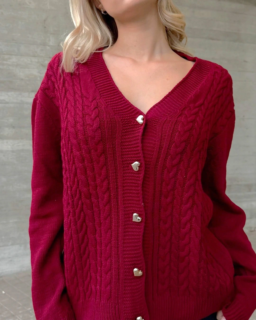 Πλεκτή ζακέτα με πλεξούδες και κουμπιά καρδιά