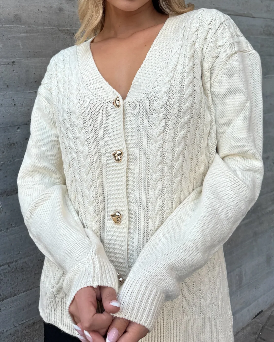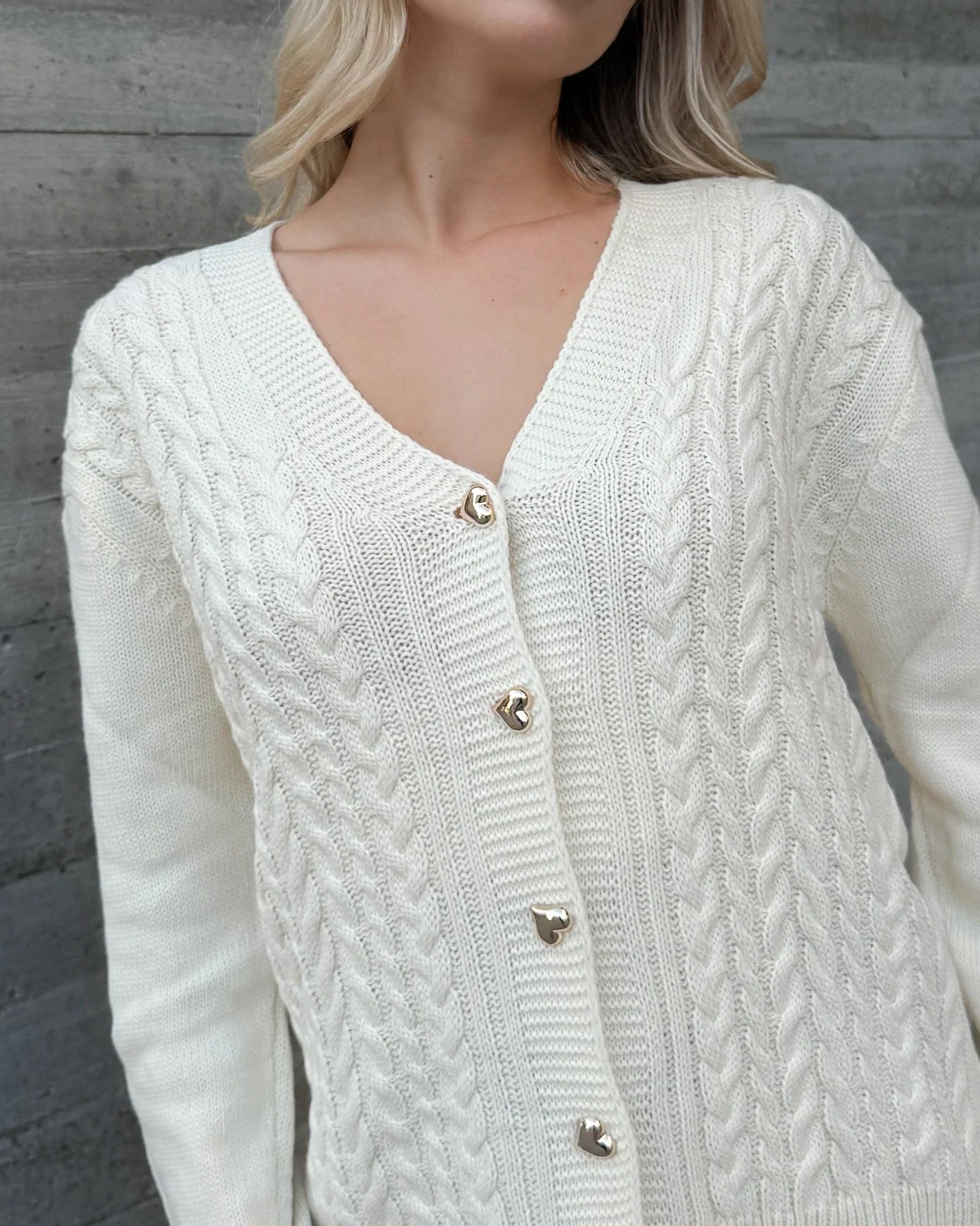 Πλεκτή ζακέτα με πλεξούδες και κουμπιά καρδιά