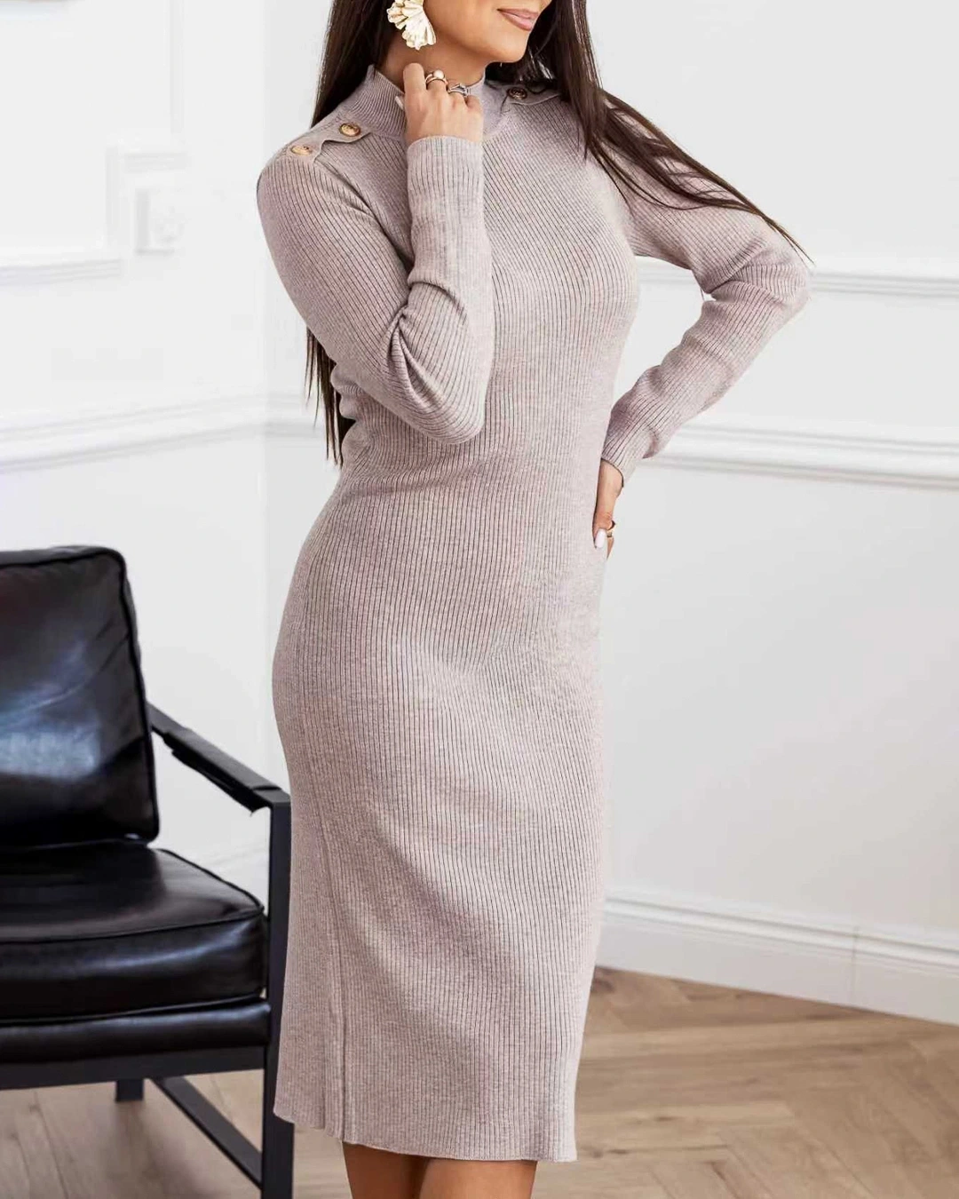 Πλεκτό μίντι φόρεμα με λουράκι και κουμπιά στους ώμους