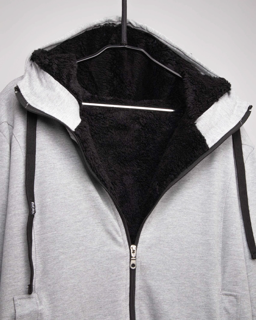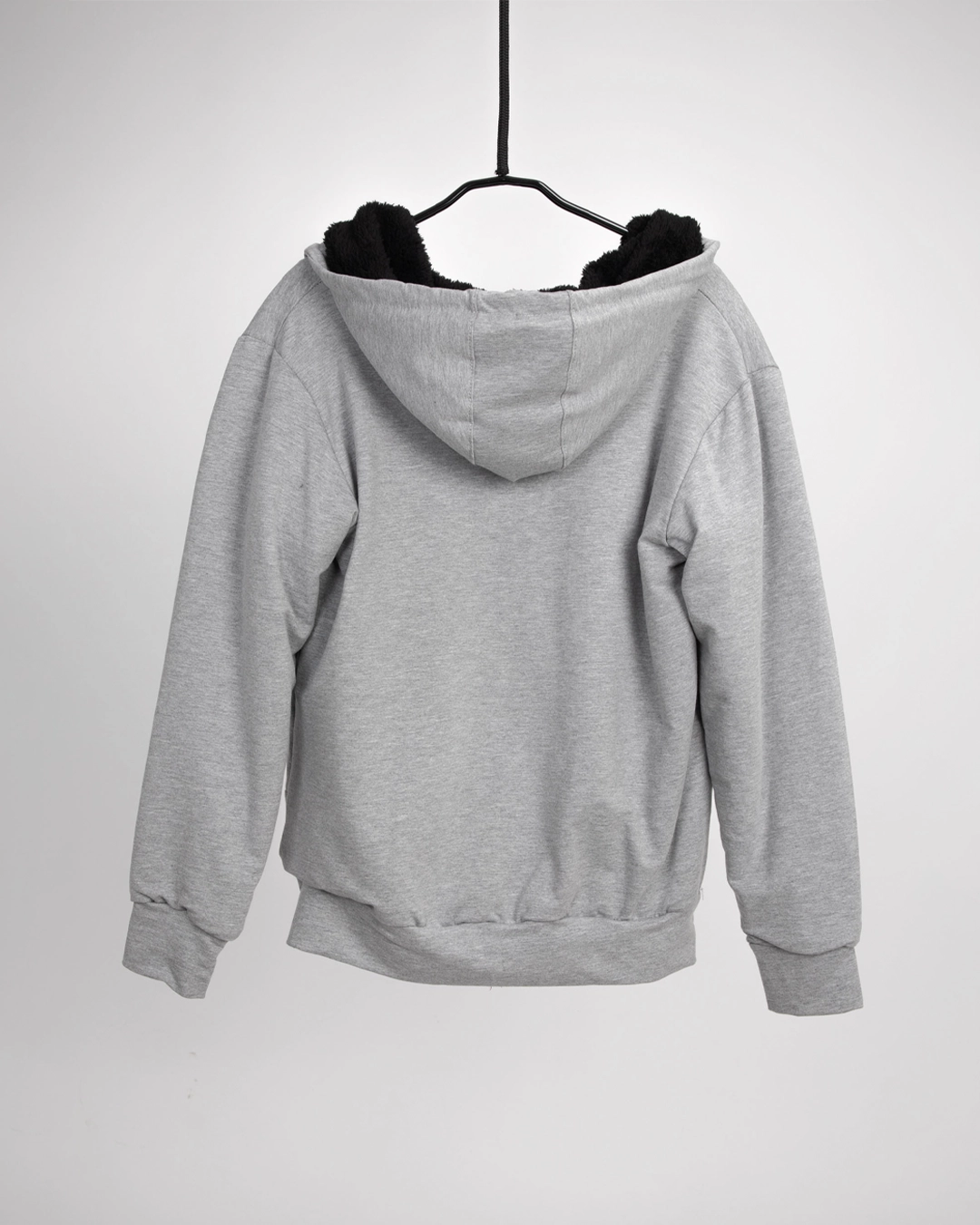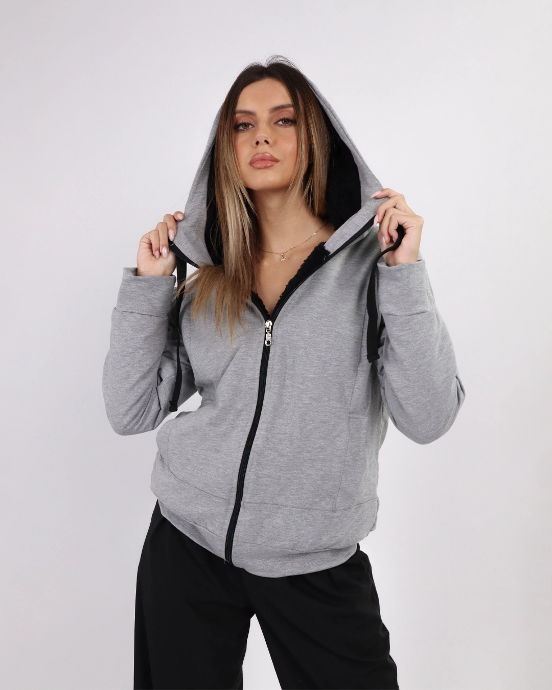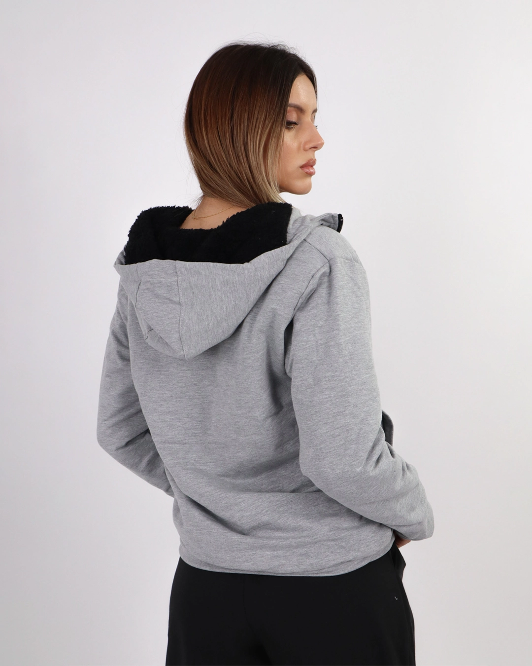 Unisex ζακέτα φούτερ με γούνινη επένδυση σε γκρι | Bodymove