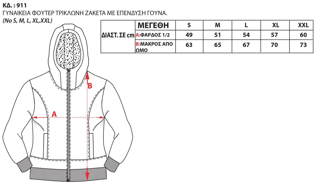 - Ύφασμα: Φούτερ τρίκλωνο εξωτερικά