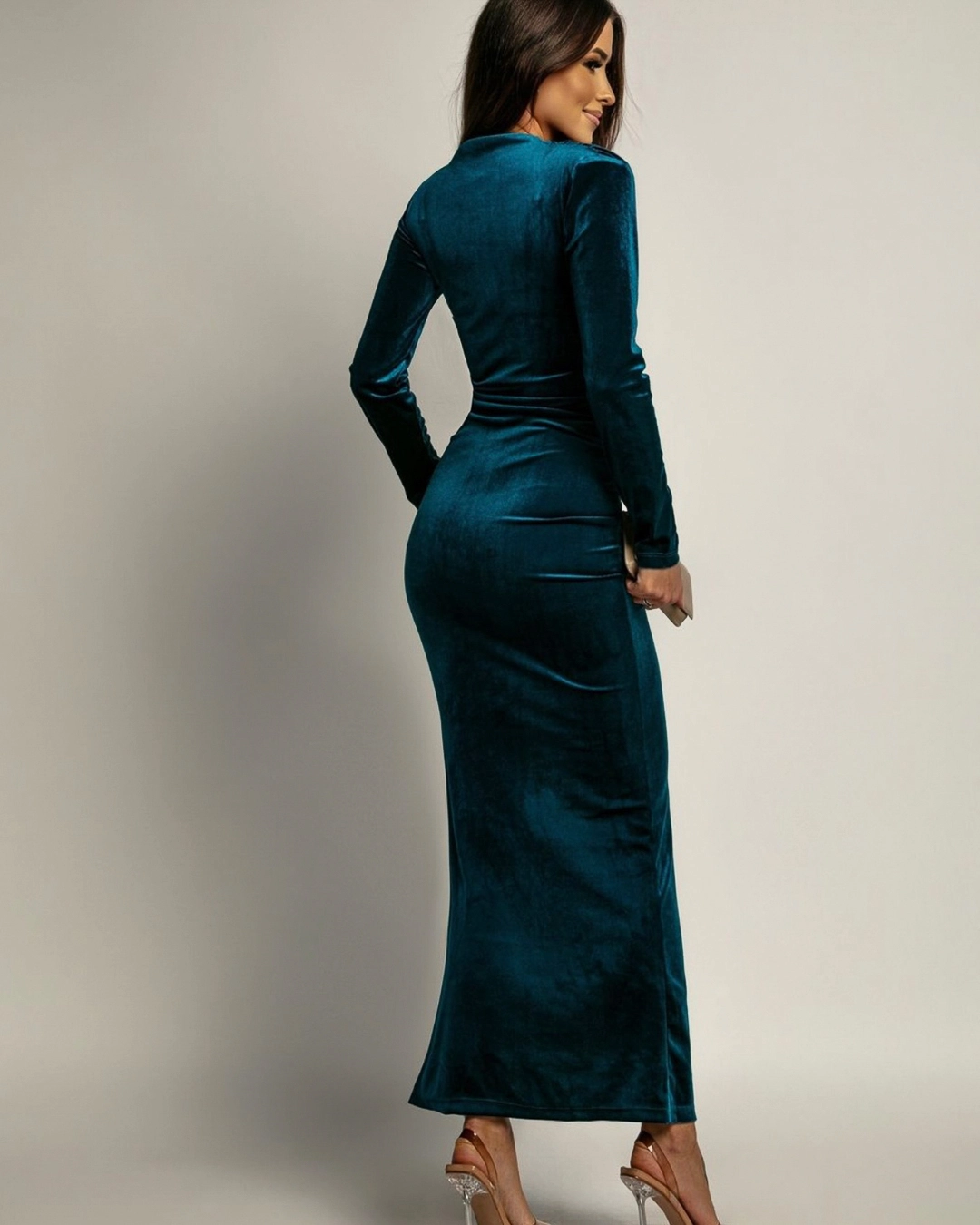 Βελουτέ μάξι φόρεμα με σούρες και άνοιγμα