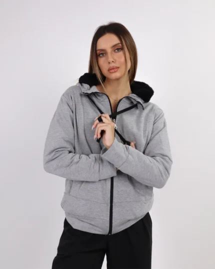 Unisex ζακέτα φούτερ με γούνινη επένδυση σε γκρι | Bodymove